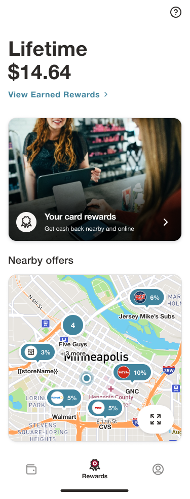 - The Rewards tab allows you to search for participating in-store and online locations.