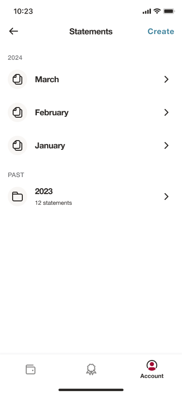 - Tap Create in the upper right corner of the account statement page.